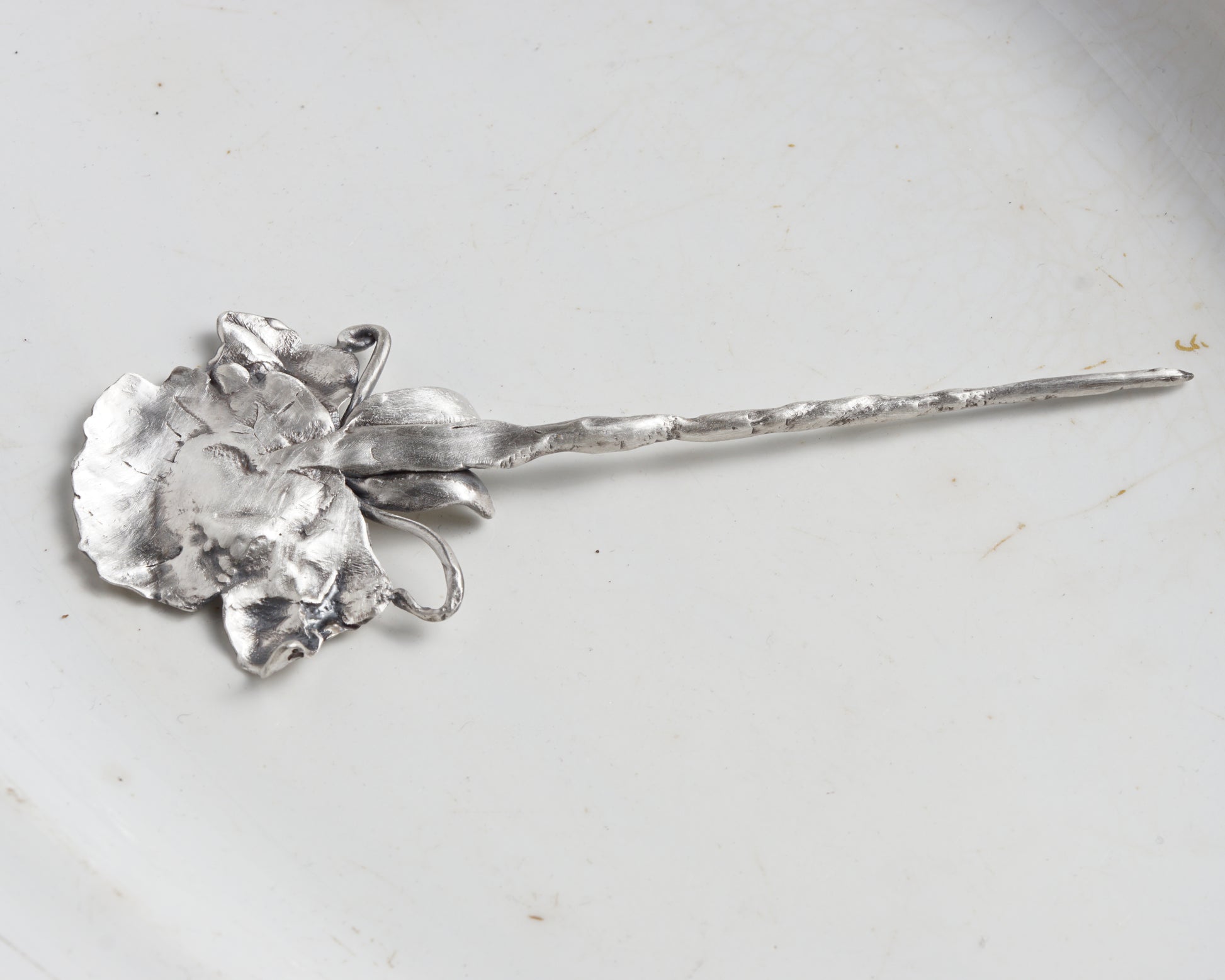 A fairytale-inspired hair pin handcrafted from 925 sterling silver. Shaped like an enchanted flower, it holds a natural moonstone at its center, glowing with soft, mystical light.