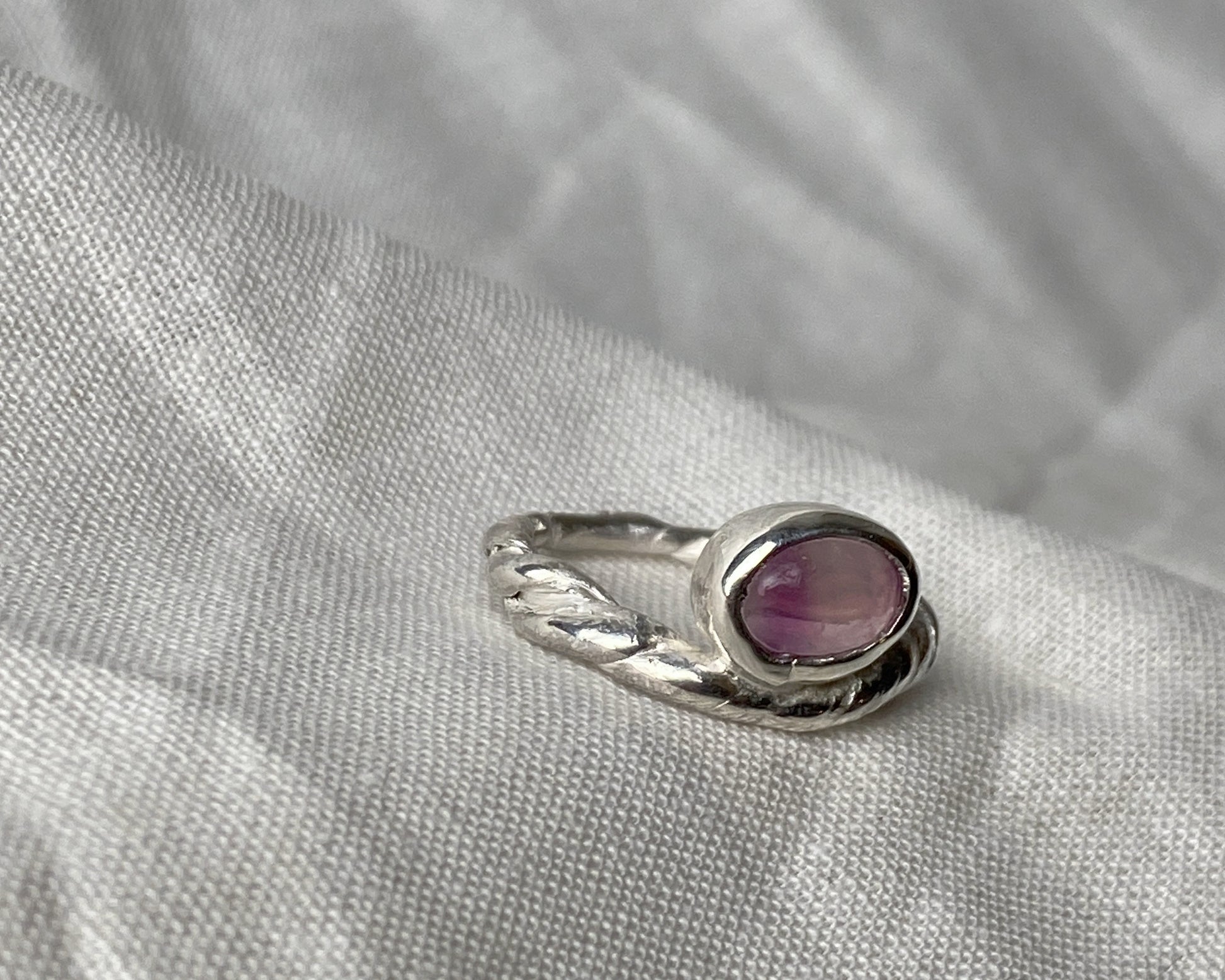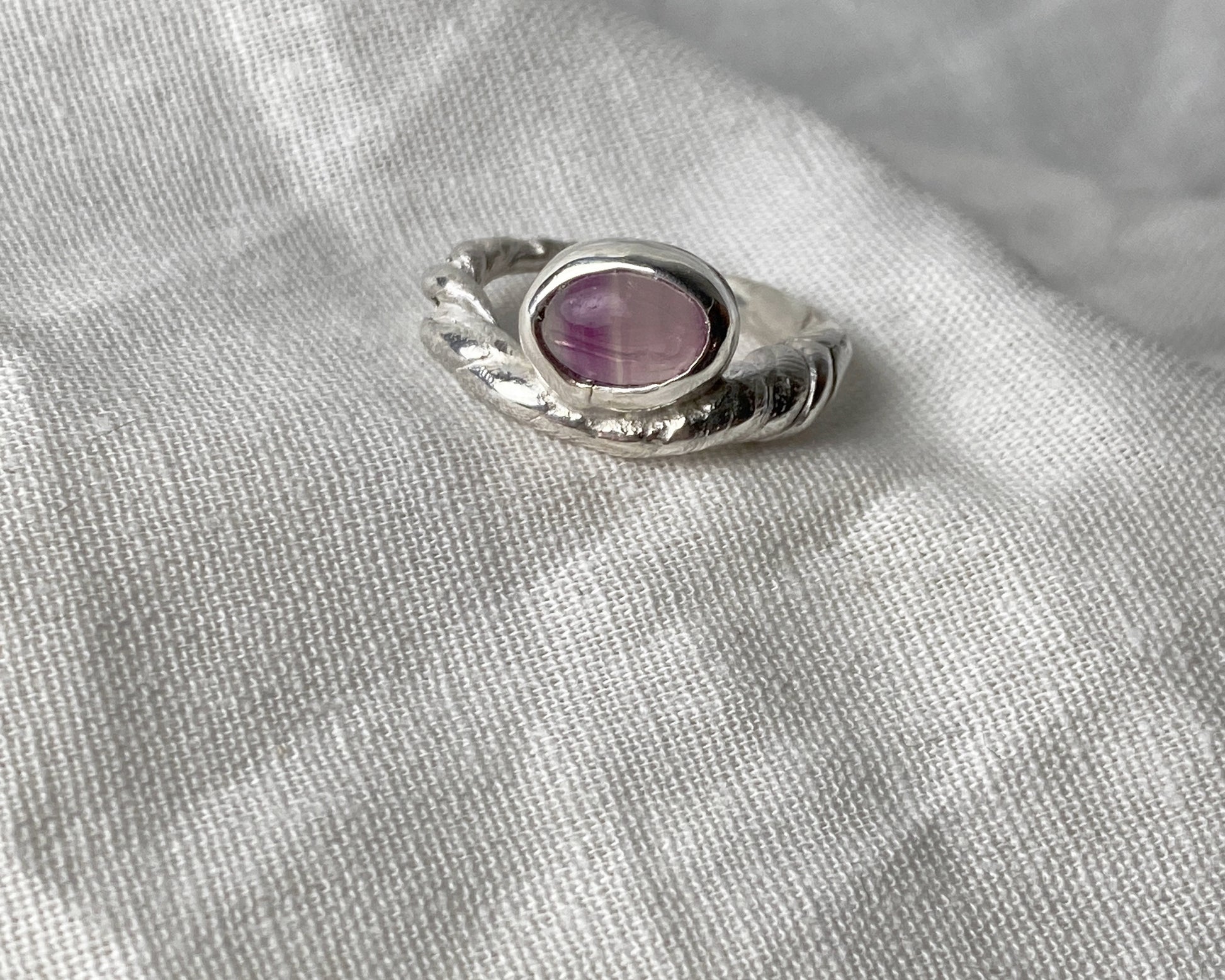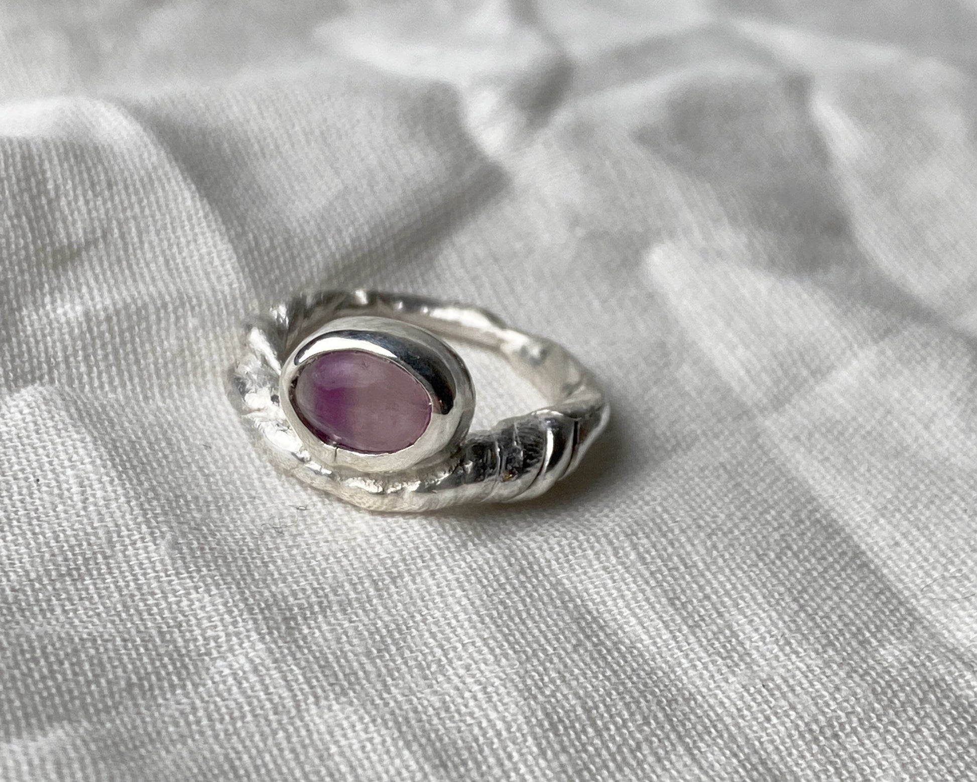 Handcrafted Sterling Silver Oval Amethyst Ring with Sculptural Design