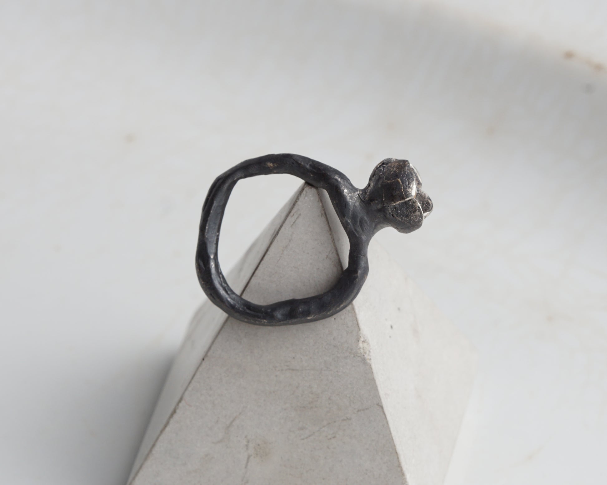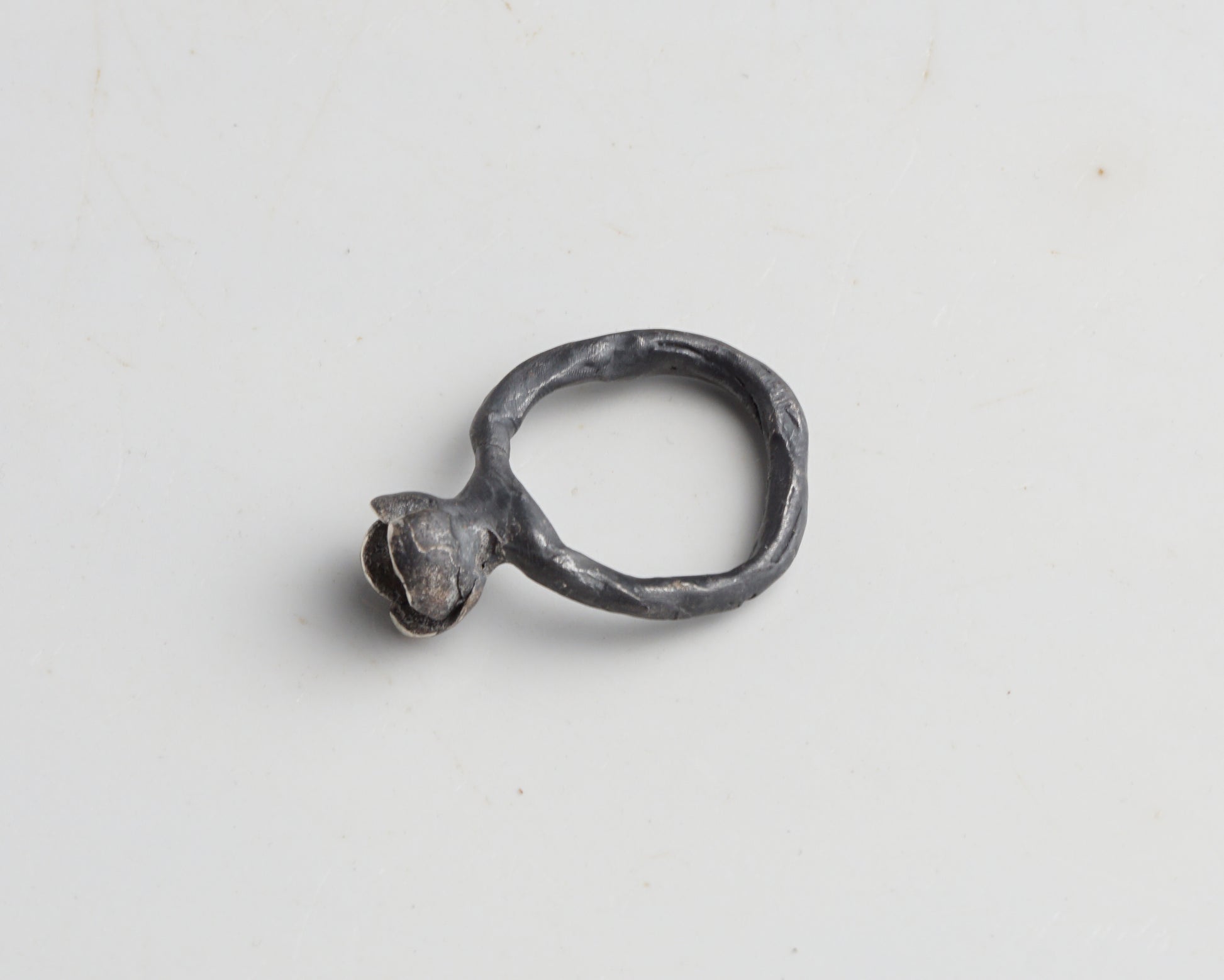 The ring should sit comfortably on the finger: tight enough, but not too tight.