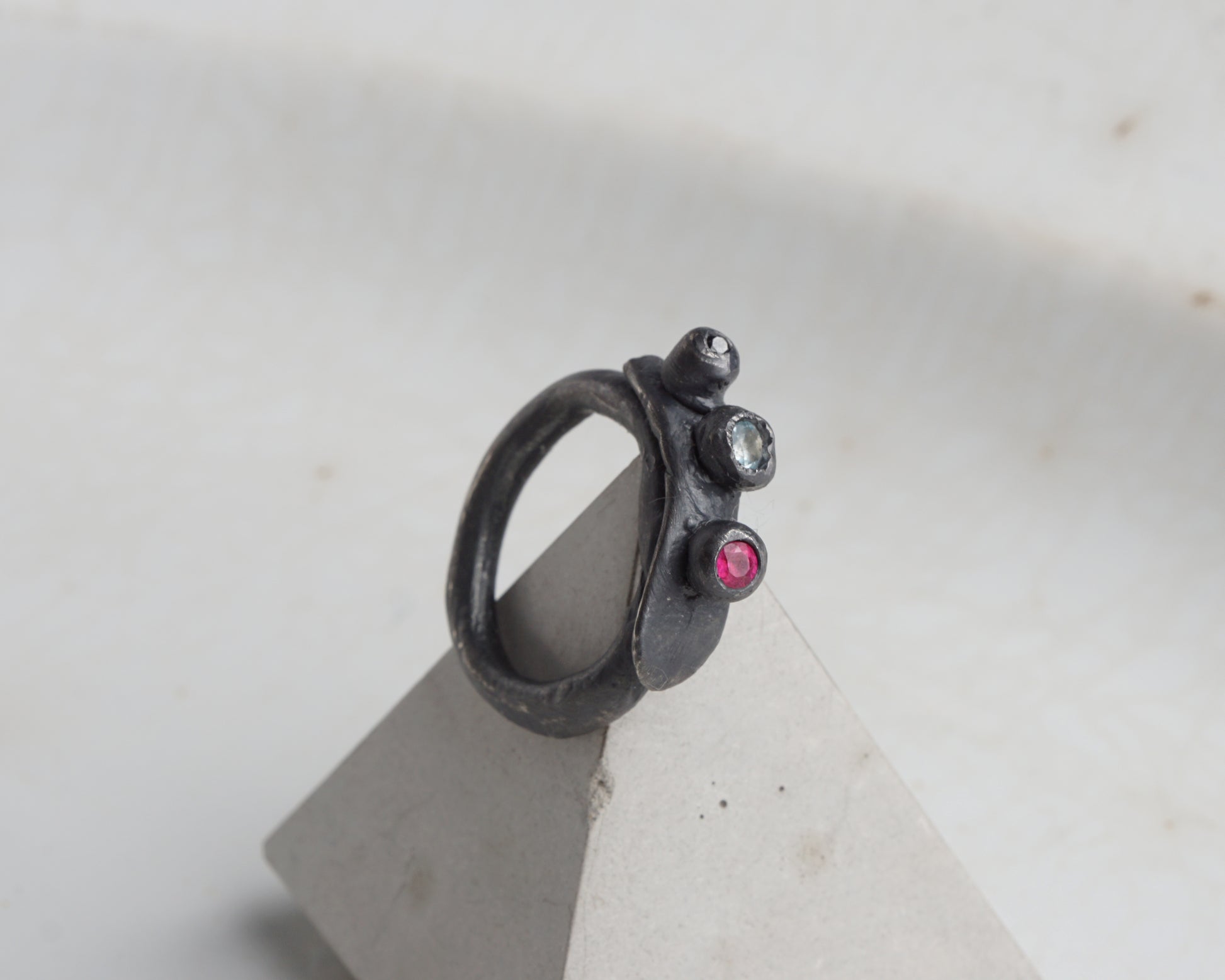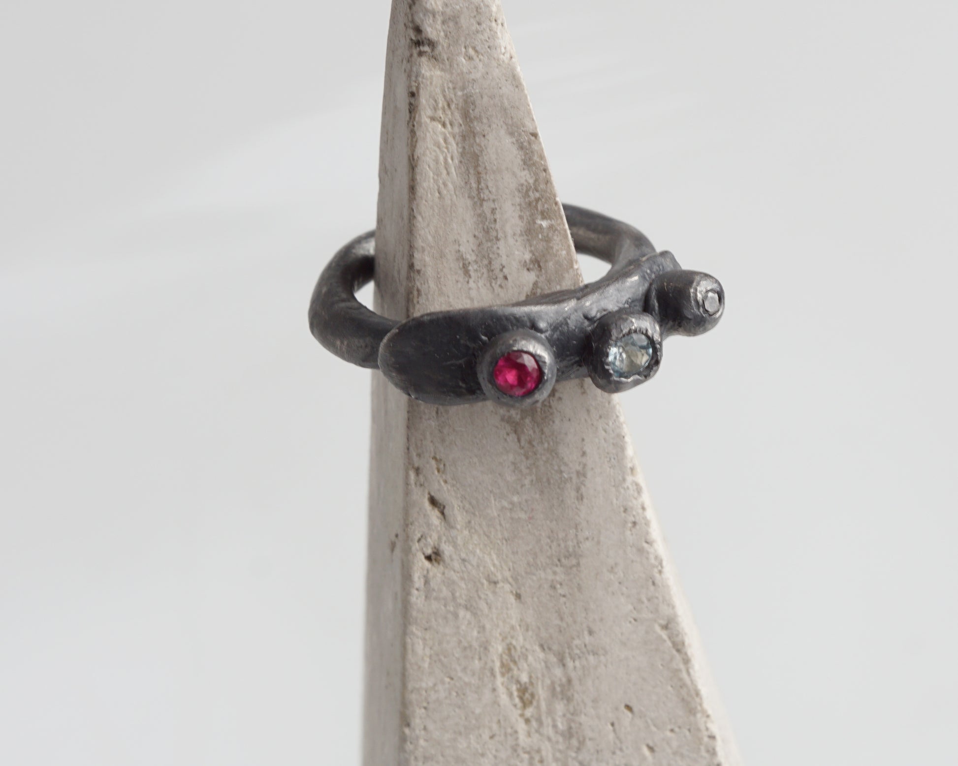 The ring should sit comfortably on the finger: tight enough, but not too tight.